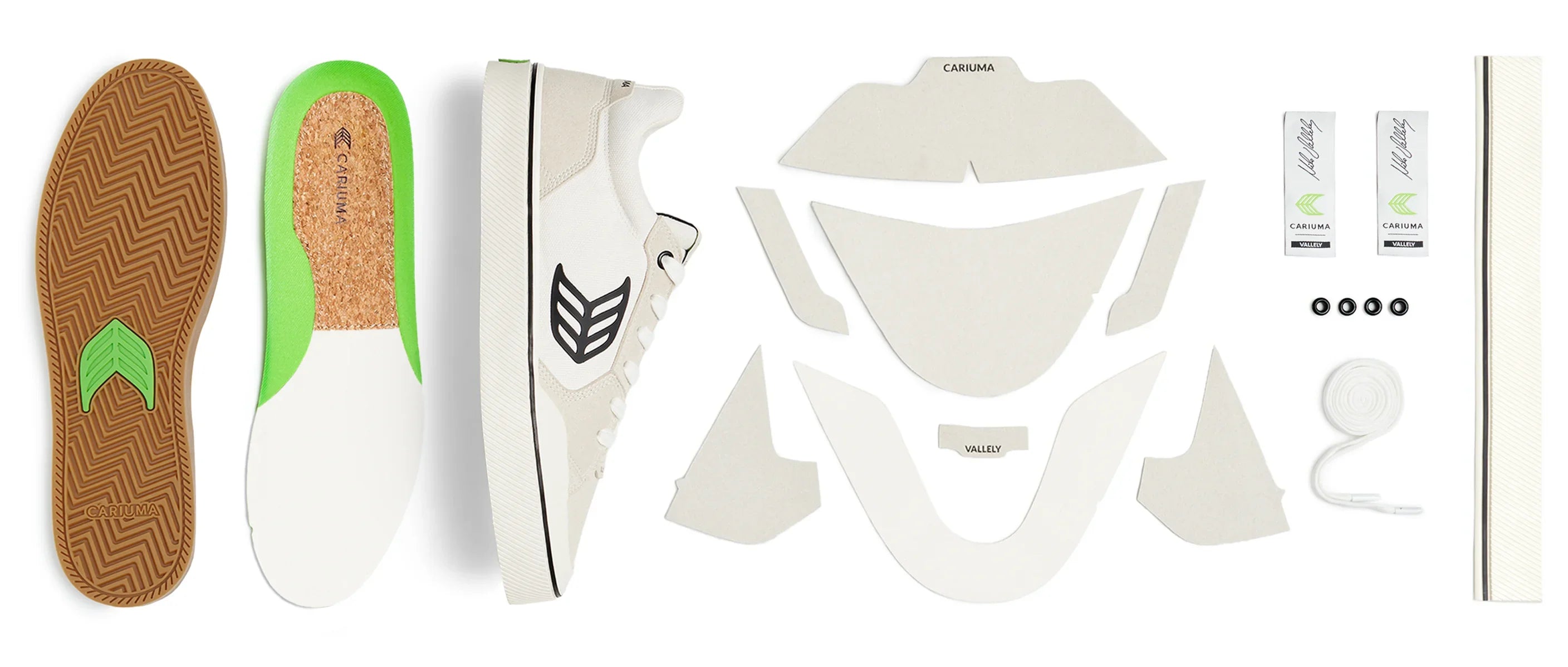 Laces: Made with rPET + organic cotton, with debossed metal aglets